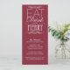 Invitación de fiesta de vacaciones en Basic Cardstock. Los copos de nieve blancos sobre el fondo rojo Berry de la BEBIDA DE COMIDA Y SER FELIZ diseño. Si necesita cambios en el diseño, envíe un correo electrónico a paula@labellarue.com