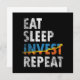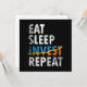 Hermosa y motivacional idea de regalo y diseño de tarjeta de invitación para cada comerciante e inversor diciendo 'Comer dormir invertir repetir'. Genial para todos los comerciantes invertir su dinero en el mercado de valores, criptodivisa o bienes raíces. Esto es perfecto para cada inversor.