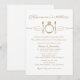 Ensayo de boda blanco y dorado antiguo y diseño de invitación a la cena ensayada con una comida, bebida y tema casado en una tipografía mixta elegante y vintage con rombo de compromiso de diamante función de desplazamiento.