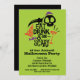 Comer, beber y tener miedo está impreso en una tipografía divertida con una copa de vino, cráneo, cuchillo espeluznante, pizza y dulces, listos para PERSONALIZAR con los detalles de su fiesta. CAMBIA el color de fondo verde limón para que se ajuste a tu tema decorativo de Halloween. Disponible como invitaciones impresas y descarga instantánea para imprimirse o enviar digitalmente.COINCIDIENDO con los elementos de nuestra colección.