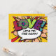 Personaliza con tus nombres y detalles para anunciar el cambio de fecha de tu evento especial. Diseño moderno y divertido de temática pop art de cómic, perfecto para bodas, fiestas de compromiso, baby showers, bautizos, celebraciones de aniversario, graduaciones, fiestas de cumpleaños y otros eventos especiales a lo largo del año. Un diseño fresco, moderno y divertido que pone el ¡zas! en tu día. Diseñado por Thisisnotme©