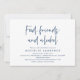 Comida, amigos y alcohol, tarjeta de invitación a la ducha de novia, duchemos a la novia. Invite a los huéspedes con esta tarjeta de invitación perfecta. Añade los detalles de tu ducha de novia con letras y letras de la letra azul de la Marina.