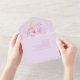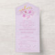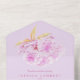 Invitación de boda todo en uno con arte de acuarela botánica de flor de lila. Personalice esta invitación de boda con detalles desmontables con los detalles de su ceremonia de boda, una foto de la feliz pareja, y agregue su RSVP con opciones de comida para invitados a sus respuestas desmontables. Otros colores y artículos de boda a juego disponibles. © Arte y diseño original de acuarela de flor de cerezo pintado a mano por la artista y diseñadora Sarah Trett www.sarahtrett.com para www.mylittleedenweddings.com en Zazzle.