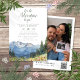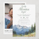 Esta moderna y elegante invitación para baby shower de acuarela de montaña y flores silvestres con el lema 'comienza la aventura' se puede personalizar con su información en tipografía moderna y una foto especial en el reverso junto con un código QR de regalo. Diseñado por Thisisnotme©