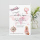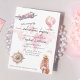 Celebremos el próximo gran viaje o viaje al mundo con un fiesta que se va. Con un avión rosado, un globo de estilo vintage y un rosa de brújula, el diseño se sitúa en un mapa del mundo de las acuarelas suaves en tonos rosa pálido y color turquesa. Una forma caprichosa y reconfortante de invitar a los invitados a su fiesta de despedida antes de partir a la gran aventura.