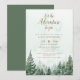 Esta elegante y rústica invitación de fiesta de bebé bosque de pinos con acuarela puede ser personalizada con su información en tipografía moderna. Diseñada por Thisisnotme©