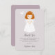 Chica Communion Dove Redhead Gracias Tarjeta Este hermoso y dulce diseño de la Primera Comunión de una niña de cabeza roja sosteniendo su primer rosario está en un fondo de lavanda con una tranquila paloma blanca. Aprecie los grandes recuerdos de la primera comunión sagrada de su hijo con este hermoso diseño. Echa un vistazo a los accesorios, papel y regalos de comunión de la Primera Comunión que coinciden.