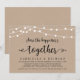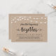 Hermosas Luces de Cadena de Granja Rústica Moderna, fuente de letra script negra sobre fondo de papel kraft, Anuncio de Boda a Escondidas, tarjeta de invitación (Comparte la felicidad juntos). Esto es perfecto para la recepción de su boda y la fiesta de celebración después de la boda. Agrega tus detalles en la fuente / letra coincidente.