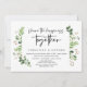 Tarjeta de invitación de boda con tema de jardín de verano con hojas verdes, guión negro moderno (Comparte la felicidad juntos). Es perfecta para la recepción de tu boda / fiesta de celebración después de la boda. Agrega tus detalles en fuente / letra negra a juego.