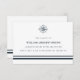 Una tarjeta clásica y elegante para el reconocimiento de simpatía en estilo náutico. Estas tarjetas de agradecimiento de simpatía incluyen una brújula azul en la parte superior, fuente serif y un borde de rayas azul marino acentuado en la parte inferior. Personalizar tu texto con una gran selección de fuentes, motivos y color de tinta.