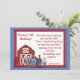 Invitación con los animales del corral en guardapolvos del dril de algodón, granero rojo, frontera azul de la fiesta del cumpleaños de un niño adorable del dril de algodón con el ajuste rojo de la cinta. Fácil personalizar con sus detalles del fiesta. Todas las invitaciones vienen completo con los sobres.