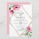 INVITACIÓN DE COMPROMISO MATRIMONIAL | Las amapolas rosadas de acuarela con follaje adornan un marco geométrico dorado con facetas estilo diamante. El reverso es de un color complementario coordinado. Personalice el texto, el estilo de letra, el color y el tamaño. Creamos esta plantilla para que sea fácil para usted personalizarla con su propia información. Esta es parte de una Suite de Papelería de Boda completa con papelería de boda, baby shower y otros eventos diseñados por WhimsicalArtwork™.