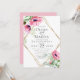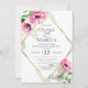 INVITACIÓN DE COMPROMISO MATRIMONIAL | Las amapolas rosadas de acuarela con follaje adornan un marco geométrico dorado de diamantes multifacéticos. El reverso es de un color complementario coordinado. Personalice el texto, el estilo de fuente, el color y el tamaño. Creamos esta plantilla para que sea fácil para usted personalizar con su propia información. Esta es parte de una Suite de Papelería de Boda completa con papelería de boda, baby shower y otros eventos diseñados por WhimsicalArtwork™.