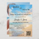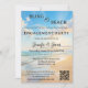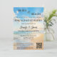 Una moderna invitación a una fiesta de compromiso boda con una pintura acuarela de una playa en un hermoso día soleado. Para su comodidad, se agrega una plantilla de código QR fácil de personalizar. En la parte de atrás está tu foto de personalizado.
