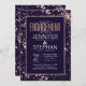 Elegante, moda y moderno trazo de rosa dorado de impresión falsa y las manchas de pintura sobre azul marino, invitaciones a la fiesta de compromiso. Este diseño clásico y sofisticado es perfecto para una pareja casera elegante, moderna y elegante. Personalice con su propio mensaje en la parte delantera y un monograma personalizado en la parte posterior. Todo el diseño de impresión fotográfica.