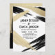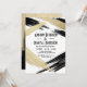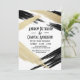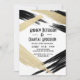 La invitación a la fiesta de compromiso boda es perfecta para una pareja moderna y elegante. Representa un patrón falso de trazo de pinceles dorado impreso y trazo de brochas negras en blanco. En la parte trasera hay un gran trazo de pinceles falso pintado en dorado en un color negro cuervo. ¡Es mínimo, artístico, moda, arte y bonito!