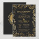 Invitación Compromiso elegante con flor dorada negro y amaril