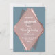 Elegante, moda y moderno con un ambiente retro, rosa falso impreso en forma de diamante geométrico dorado contorno sobre rombo polvoriento azul, malva, rosa y gris carbón vegetal, invitaciones a la fiesta de compromiso. Este diseño clásico y sofisticado es perfecto para una pareja casera elegante, moderna y elegante. Personalice con su propio mensaje en la parte delantera y un monograma personalizado en la parte posterior. Todo el diseño de impresión fotográfica.