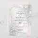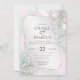 INVITACIÓN DE PARTICIPACIÓN DE BODAS | Espléndido fondo luminiscente espumoso de lavanda con hojas de rosa luminosas, hojas de eucalipto, aliento de bebé y gotas brillantes. Invertir es un color coordinado de cortesía. Este diseño se ve especialmente bien en la elección de papel Pearl Shimmer. texto personalizar, estilo de fuente, color y tamaño. Creamos esta plantilla para facilitar la personalización con su propia información. Esto forma parte de una completa suite de estilo Boda con boda, ducha para bebés y otras papelería de eventos. Obra de arte original © de WhimsicalArtwork™.