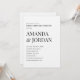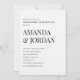 Celebra tu amor con la elegancia eterna. Esta invitación a la fiesta de compromiso ultra minimalista presenta una tipografía negra limpia en un fondo blanco nítido, que equilibra perfectamente la sofisticación y la simplicidad. Con audaces nombres serif apilados para impactos y refinados detalles sans-serif, este diseño es ideal para parejas modernas que aprecian el lujo subestimado. Completamente personalizable por los detalles de su evento, esta invitación combina maravillosamente con temas de eventos en blanco y negro, texturas de lino y carteles acrílicos.