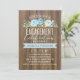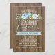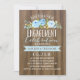 Este elegante y rústico Engagement Party Invitation ofrece bonitas flores de color acuático y una mezcla de tipografía moderna, todo ello con un fondo de madera de moda. ¡Envíe a sus invitados una invitación que no olvidarán! Para una invitación aún más memorable, seleccione una forma cortada, un papel texturado o un papel de doble grueso.