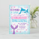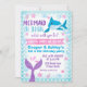 Esta invitación común del cumpleaños es conveniente para un hermano y una hermana o dos amigos. Las características del diseño un tiburón y una sirena atan en un diseño sobre todo azul y púrpura. El mismo diseño está también disponible con la foto en la tienda. Esta invitación común del cumpleaños de la sirena y del tiburón de los niños está lista para ser personalizado.