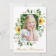 Elegante moderno Primera Comunión Acuarela Sunflower y verde botánico Tarjeta de invitación a la fotografía de oro