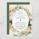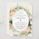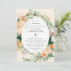 Hermosas invitaciones de la Comunión con un elegante marco moderno y neutro de color pastel acuarela floral botánico con tonos tierra suaves de melocotón, naranja, suave rubor, amarillos y muchos matices de verde entre verde sabio y verde brillante y profundo. Sus detalles personalizados se muestran en una distribución tipográfica elevada que coloca el chica dulce en el centro y frente.