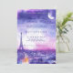 Esta elegante tarjeta de detalles de la colección de papelería boda Amour Éternel à la Parisienne captura el encanto y la sofisticación de una celebración situada en el corazón de Francia. Con un ilustracion de ensueño de la Torre Eiffel bajo un cielo iluminado por la luna, el diseño evoca el romanticismo de París por la noche, donde las calles adoquinadas brillan, las luces de las ciudades brillan y cada momento se siente conmovido por la magia. La rica paleta de morados y azules, emparejada con delicadas siluetas arquitectónicas, crea una sensación de belleza intemporal e intimidad refinada. Con una elegante tipografía, la tarjeta ofrece espacio para información esencial de los huéspedes, desde transporte y alojamiento hasta planes de recepción y código de vestimenta, manteniendo al mismo tiempo un sentido de elegancia poética. Ya sea que esté escondido en una suite de invitaciones o mostrado como parte de un paquete de bienvenida, agrega una capa de narración y estilo a su celebración. Coordinada con el resto de la suite Amour Éternel à la Parisienne, esta tarjeta ayuda a crear una experiencia perfecta que se siente curada, romántica y sin esfuerzo.