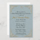 Elegante invitación con relieve, esquinas ornamentadas de oro y acento de corazones de oro en fondo azul moteado. Las invitaciones vienen completas con sobres blancos y elección de papel.