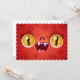 Invitación con dragón rojo o zombi para Halloween. Graciosa tarjeta de Halloween. Tarjeta retro con monstruo para Halloween.