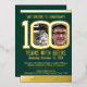 Invitación Con Relieve Metalizado 100th Birthday party cheer beers green gold photos