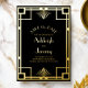 Invitación Con Relieve Metalizado 1920s Deco Black Gold Wedding Save the Date