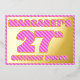 La parte delantera de esta audaz y divertida tarjeta de invitación de Relieve metalizado para celebraciones de 27 años tiene un nombre personalizado, un gran número "27", el mensaje "¡PARTIDO DE CUMPLEAÑOS!", y un borde, todos con un patrón femenino de líneas rosa oscuro y rosa claro. En la parte posterior se incluyen detalles personalizados sobre el evento, como la fecha, hora, lugar/ubicación y cualquier otra información relevante. Las invitaciones personalizadas como estas pueden ser usadas para invitar a asistentes/invitados a una fiesta de cumpleaños que se lleva a cabo en celebración del cumpleaños 27 de alguien. [~Z0000597]
