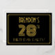 El frente de esta inspirada y vintage invitación a Relieve metalizado de 28 años inspirada en los Roaring Twenties incluye un nombre personalizado, un gran número inspirado en el estilo Art Déco "28TH", el mensaje "¡PARTIDO DE CUMPLEAÑOS!" y un patrón fronterizo formado por líneas. El fondo del frente es negro de color de forma predeterminada, pero se puede personalizar a un color diferente si se desea. La parte posterior incluye detalles personalizados sobre el evento, como la fecha, hora, ubicación y cualquier otra información relevante. Invitaciones de personalizable lujosas, elegantes, como estas podrían ser usadas para invitar a los invitados a una fiesta de cumpleaños/celebración que se lleva a cabo para honrar el cumpleaños 28 de alguien. [~Z0000590]