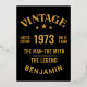 40 cumpleaños, cualquier año cumpleaños para él. Doble cara. Viñeta, edición limitada, una especie, nacida en 1973, el hombre, la mita, la leyenda, cualquier nombre. Relieve metalizado sobre fondo negro.