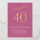 Invitación Con Relieve Metalizado 40 Oro rosa 40 Fiesta de cumpleaños