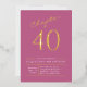 Celebra tu 40 cumpleaños con estilo con estas invitaciones de lujo personalizados! Perfecto para acoger una reunión de tu familia y amigos, estas invitaciones rosadas y de Relieve metalizado dorado destacarán del resto. Establece el tono para una celebración elegante y sofisticada con estas bellas tarjetas. ¡Ayúdanos a hacer de tu cumpleaños 40 uno para recordar!