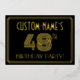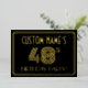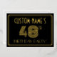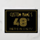 La fachada de este estilo vintage y la invitación al Relieve metalizado de cuarenta y ocho años inspirada en el estilo de los años 20/30, presenta un nombre personalizado, un gran número inspirado en el estilo Art Déco "48TH", el mensaje "BIRTHDAY PARTY!" y un patrón fronterizo compuesto de líneas. Hay un fondo de color negro en el frente de forma predeterminada, pero se puede personalizar a un color diferente si se desea. La parte posterior incluye detalles personalizados sobre el evento, como la fecha, hora, ubicación y cualquier otra información relevante. Invitaciones lujosas, elegantes y personalizadas como estas podrían ser usadas para invitar a los invitados a una celebración de cumpleaños que se lleva a cabo para honrar el cumpleaños 48 de alguien. [~Z0000590]