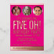Audaz simple gráfico brillante rosa caliente, y Relieve metalizado oro rosa o tu propia plantilla de foto color Relieve metalizado gran invitación de 50 años. Personalice esta invitación de cumpleaños con sus propios detalles de la fiesta de cumpleaños, y tres fotos diferentes de su chica de cumpleaños en los círculos de fotos para sus fotos de ahora y después. Están disponibles colores de otros años y elementos coincidentes. © Diseño original de Sarah Trett para www.mylittleeden.com en Zazzle.