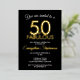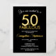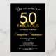 Invitación Con Relieve Metalizado 50 and Fabulous Modern Black Gold 50th Birthday