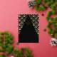 Únase a nosotros para una época de rugido con esta elegante y divertida invitación de cumpleaños cincuenta fabulosa al estilo Art Deco. Este diseño captura perfectamente el glamour de la década de 1920 y la era del Gran Gatsby. Cuenta con un audaz patrón de abanico geométrico en negro elegante. Es la elección perfecta para una celebración de 50 años, almuerzo o fiesta de compromiso sofisticada y memorable con tema de flapper o de la década de 1920. El estilo vintage Art Nouveau y Art Deco es un giro elegante en una invitación tradicional.