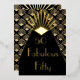 Invitación Con Relieve Metalizado 50 cumpleaños Art Deco Elegante Negro Dorado