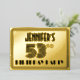 La fachada de esta elegante y inspirada tarjeta de invitación de Relieve metalizado de cincuenta tercios años de estilo años 20-1930 presenta un nombre personalizado, un intrincado estilo Art Déco inspirado en el número "53", el mensaje "PARTIDO DE CUMPLEAÑOS" y un patrón fronterizo compuesto de líneas. En la parte posterior se incluyen detalles personalizados sobre el evento, como la fecha, hora, ubicación/lugar y cualquier otra información importante. Invitaciones elegantes, lujosas y personalizadas como estas podrían ser usadas para invitar a los asistentes a una fiesta/reunión de cumpleaños que se lleva a cabo para honrar el cumpleaños 53 de alguien. [~Z0000594]
