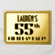 El frente de esta elegante y inspirada tarjeta de invitación de Relieve metalizado de la era de los locos 2005 cuenta con un nombre de personalizable, un estilo Art Deco inspirado en el número "55", el mensaje "PARTIDO DE CUMPLEAÑOS" y un patrón fronterizo compuesto de líneas. En la parte posterior se incluyen detalles personalizados sobre el evento, como el lugar, la fecha, la hora y cualquier otra información que pueda ser importante. Invitaciones lujosas, elegantes y personalizadas como estas podrían ser usadas para invitar a los invitados a una reunión/fiesta de cumpleaños que se celebra para celebrar el cumpleaños 55 de alguien. [~Z0000606]