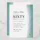 This stylish and elegant birthday party invitation features a seafoam green brush stroke texture and real foil splatter on top. Here shown for a 60th birthday party, but you can change the age to anything.