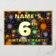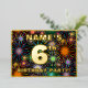 La parte delantera de este alegre diseño de tarjeta de invitación a Relieves metalizados de sexto cumpleaños incluye un nombre editable, un gran número "6º", el mensaje "¡FIESTA DE CUMPLEAÑOS!" y un borde. El fondo del frente presenta un llamativo y colorido patrón que se asemeja a los fuegos artificiales de celebración. En la parte posterior se incluyen detalles personalizados sobre el evento, como la fecha, la hora, el lugar y cualquier otra información que pueda ser relevante. Invitaciones editables como estas pueden ser una manera divertida de invitar a los asistentes a una reunión de cumpleaños que se lleva a cabo para celebrar el sexto cumpleaños de alguien. [~Z0000602]