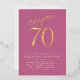 Invitación Con Relieve Metalizado 70 Oro rosado de la Fiesta de Cumpleaños 70