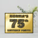 La parte delantera de esta audaz tarjeta de invitación para Relieves metalizados de 75 años incluye un nombre personalizado, un gran número "75", el mensaje "¡PARTIDO DE CUMPLEAÑOS!" y una frontera, todas con un estilo rústico y sofisticado inspirado en el aspecto de granos de madera falsa. La parte posterior incluye detalles personalizados sobre el evento, como la fecha, la hora, la ubicación y cualquier otra información útil. Las invitaciones personalizadas como estas podrían ser usadas para invitar a los asistentes a una reunión/fiesta de cumpleaños que se lleva a cabo en celebración del cumpleaños 75 de alguien. [~Z0000595]