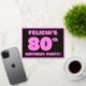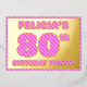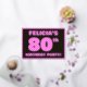 La parte delantera de esta audaz y divertida tarjeta de invitación de Relieve metalizado de 80 años tiene un nombre editable, un gran número "80", el mensaje "¡FIESTA DE CUMPLEAÑOS!", y un borde, todos con un patrón de líneas rosa oscuro y oscuro. En la parte posterior se incluyen detalles personalizados sobre el evento, como la fecha, la hora, el lugar/lugar y cualquier otra información importante. Las invitaciones de personalizable como estas podrían ser usadas para invitar a los asistentes a una reunión de cumpleaños que se lleva a cabo para honrar el cumpleaños 80 de alguien. [~Z0000597]